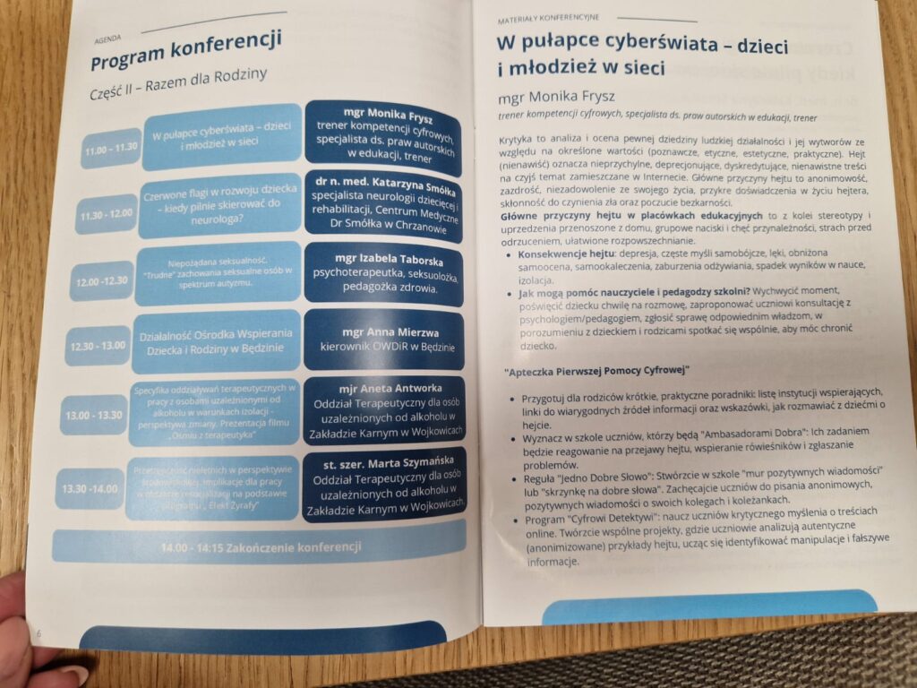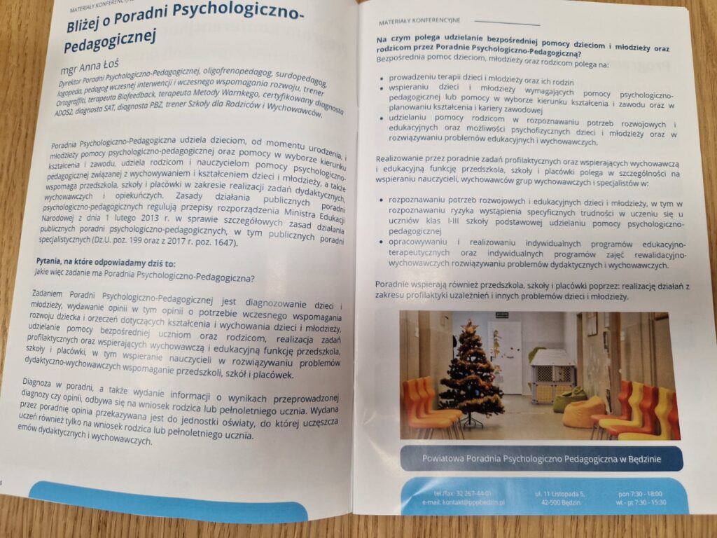 Serdecznie dziękuję Panu Sebastianowi Szaleńcowi, staroście Powiatu Będzińskiego za współorganizację konferencji, a wszystkim prelegentom – za poświęcony czas i wartościowe prezentacje. Pani doktor Katarzynie Smółce dziękuję za partnerstwo i wydanie naszej broszury merytorycznej a pracownikom Poradni Psychologiczno-Pedagogicznej w Będzinie za zaangażowanie w przygotowanie konferencji i serce, jakie wkładają w codzienną pracę.